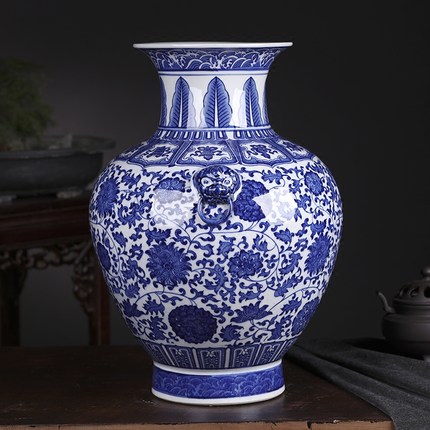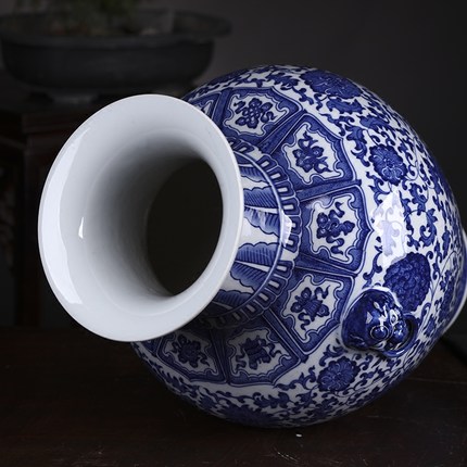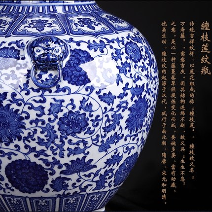 1: Blue and white tangled lotus double-eared Luohan vase: 43x33x9x- cm
