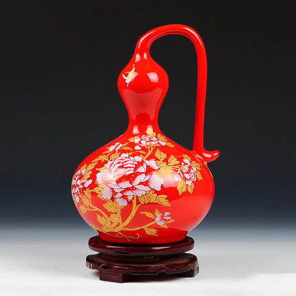 OEM-udskiftning Jahrriesnge red peony gourd vase cna0688 Porcelæn