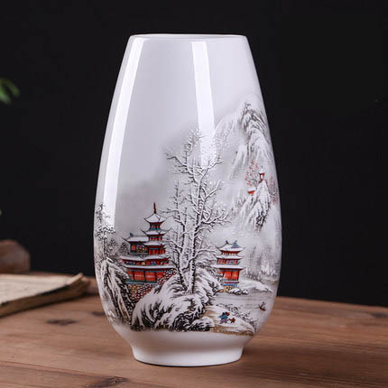 Thin-body porcelain snow scene small vase decoration.