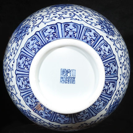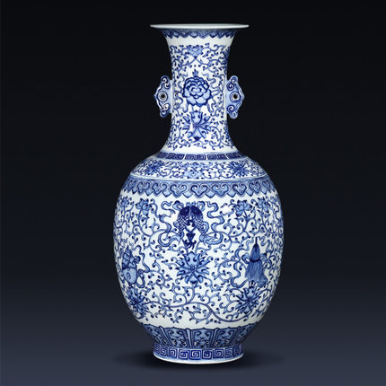 Painted Blue and White Eight Treasures Binaural Ceramic Vase