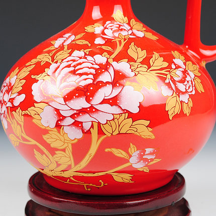OEM-udskiftning Jahrriesnge red peony gourd vase cna0688 Porcelæn